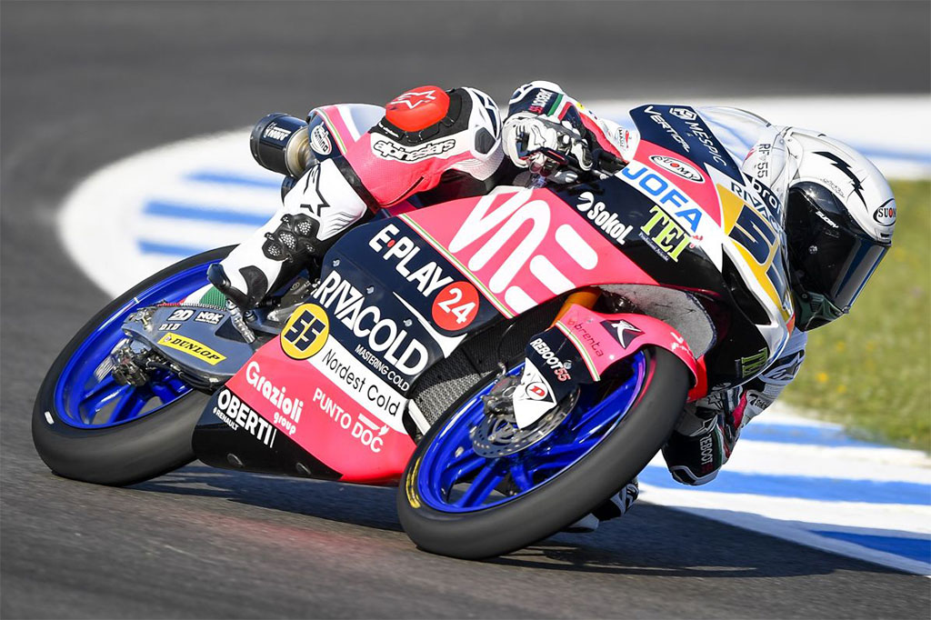 Garone indescrivibile: Fenati si posiziona subito tra i primi e ci resta fino ad un lungo che lo arretra. Tony Arbolino è artefice di una gara da paura ma, in una staccata troppo spinta, scoppia l’airbag e dal colpo rovina la visiera del casco e perde tutte le posizioni a punti.