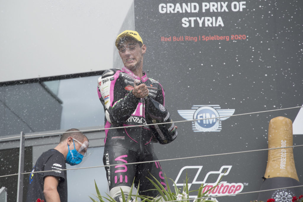 Domenica 23 agosto Tony Arbolino si prende la prima posizione e conduce, imponendo un gran ritmo per tutta la prima metà gara.